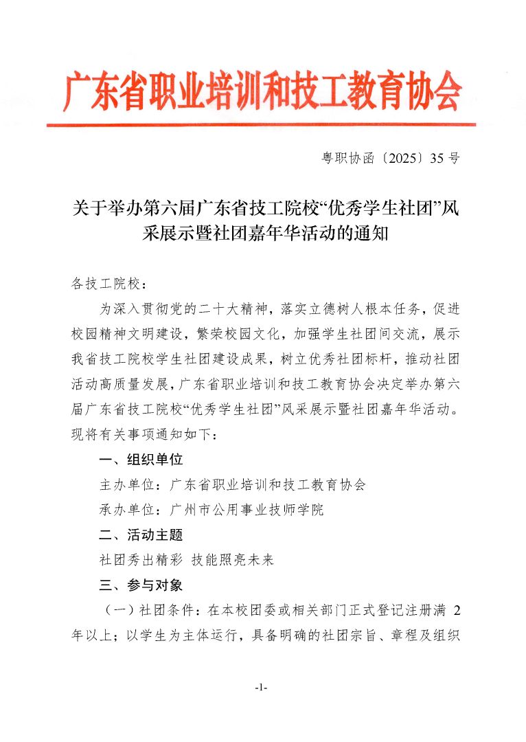 关于举办第六届广东省技工院校“优秀学生社团”风采展示暨社团嘉年华活动的通知
