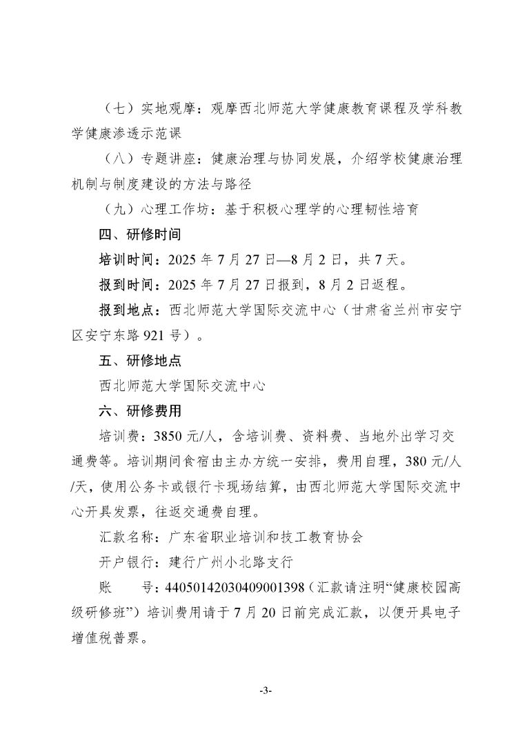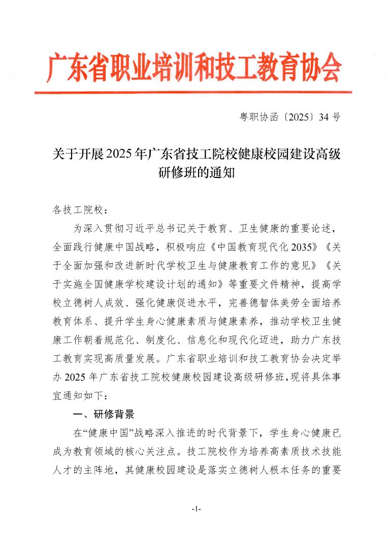 关于开展2025 年广东省技工院校健康校园建设高级研修班的通知