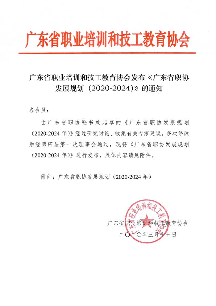 文件下载:广东省职业培训和技工教育协会发布《广东省职协发展规划(2020-2024)》的通知 点击下载