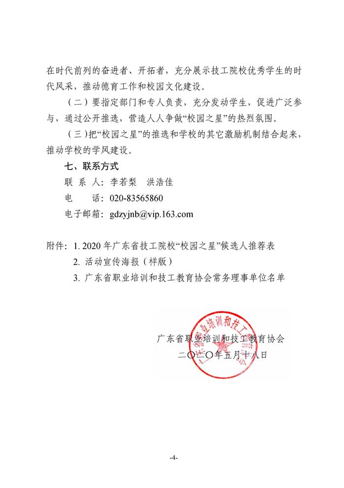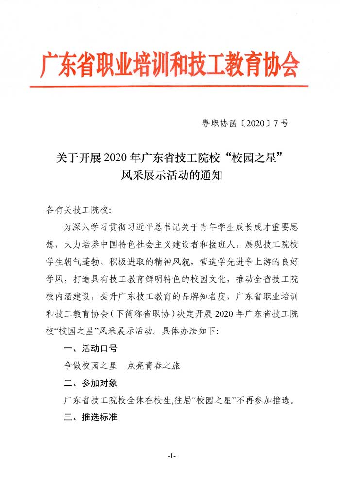 文件下载:关于开展2020年广东省技工院校“校园之星”风采展示活动的通知(粤职协函〔2020〕7号)点击下载