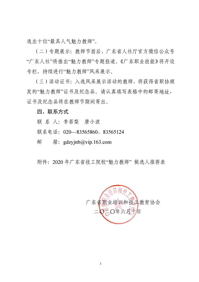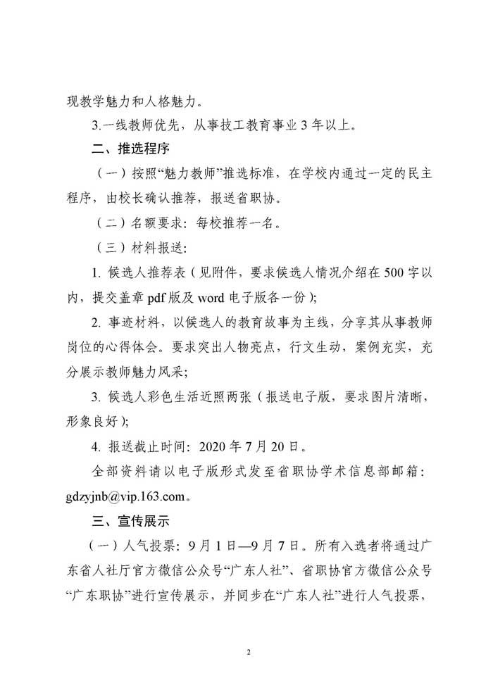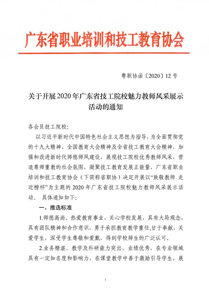 文件下载:关于开展2020年广东省技工院校魅力教师风采展示活动的通知(粤职协函〔2020〕12号)点击下载