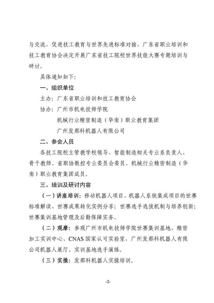 关于开展广东省技工院校世界技能大赛专题培训与研讨的通知