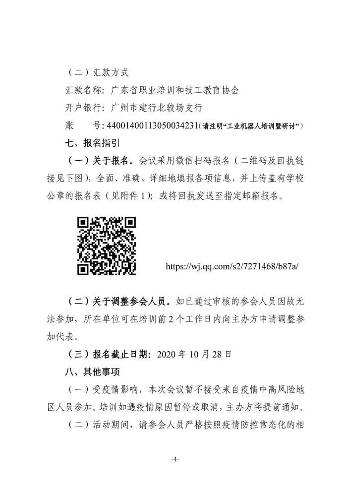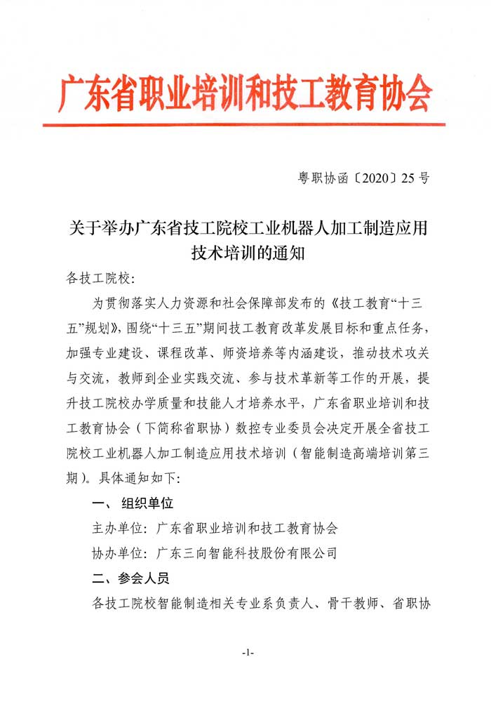 文件下载:关于举办广东省技工院校工业机器人加工制造应用技术培训的通知(粤职协函〔2020〕25号) 点击下载