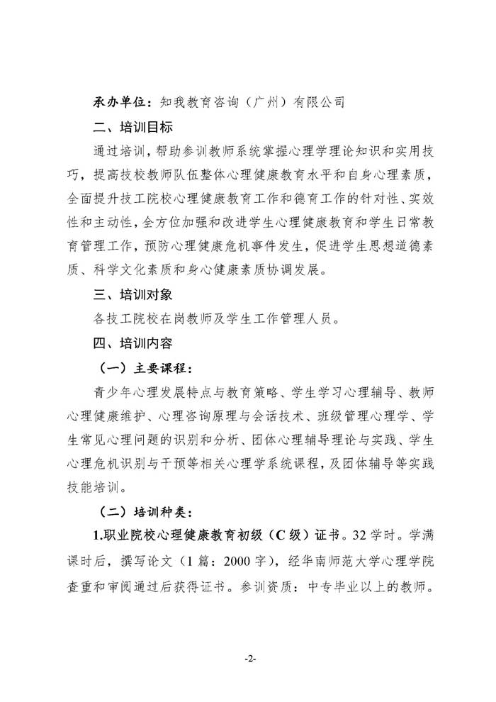 关于开展广东省技工院校教师心理健康教育师资培训及考证(第二期)的通知
