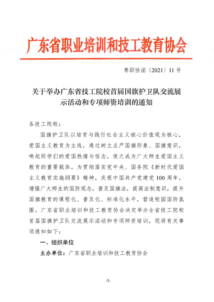 关于举办广东省技工院校首届国旗护卫队交流展示活动和专项师资培训的通知