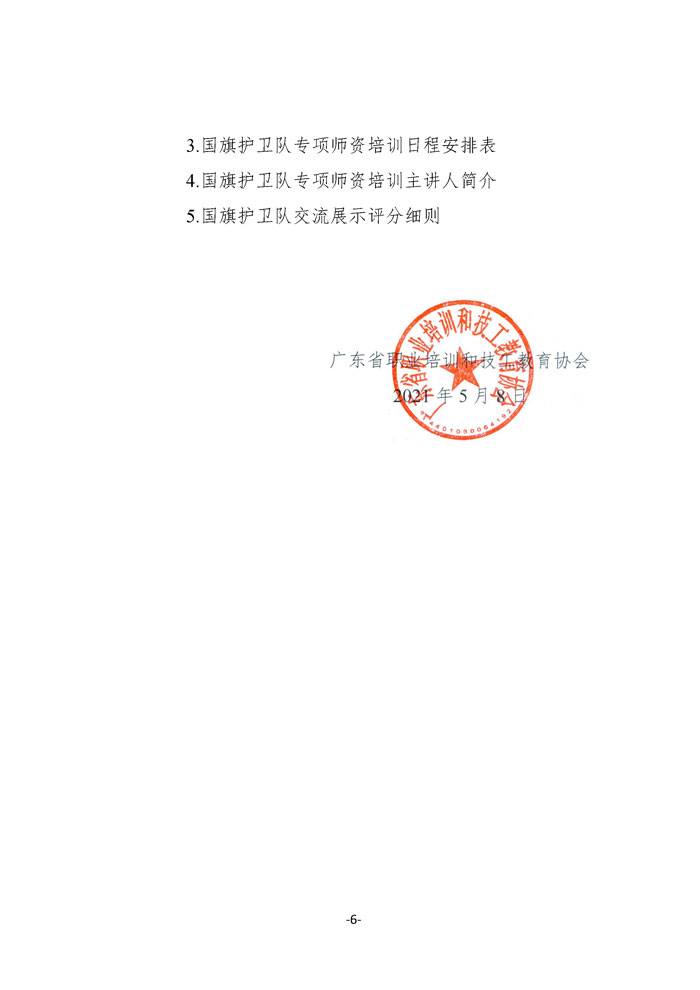文件下载:关于举办广东省技工院校首届国旗护卫队交流展示活动和专项师资培训的通知(粤职协函〔2021〕11号) 点击下载