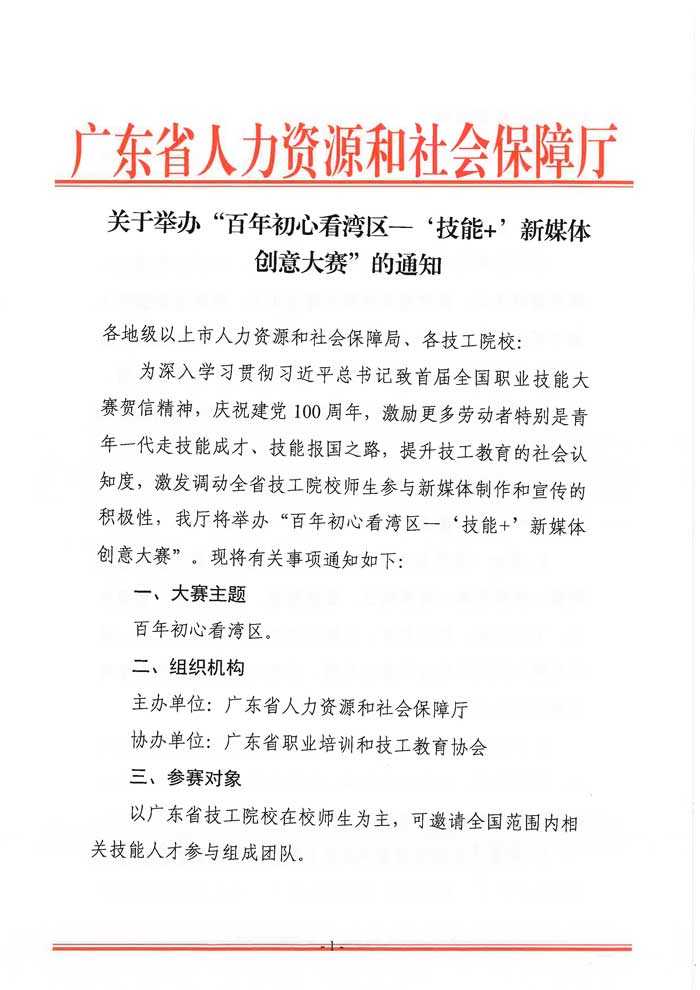 文件下载:关于举办“百年初心看湾区—‘技能+'新媒体创意大赛”的通知
