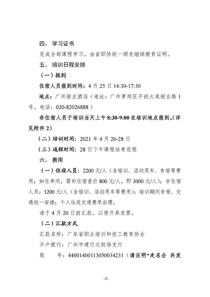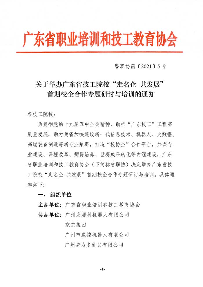 文件下载:关于举办广东省技工院校“走名企 共发展”首期校企合作专题研讨与培训的通知(粤职协函〔2021〕5号) 点击下载