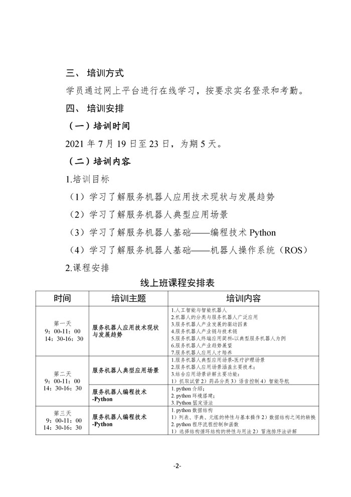 关于举办服务机器人与人工智能技术基础线上研修班的通知