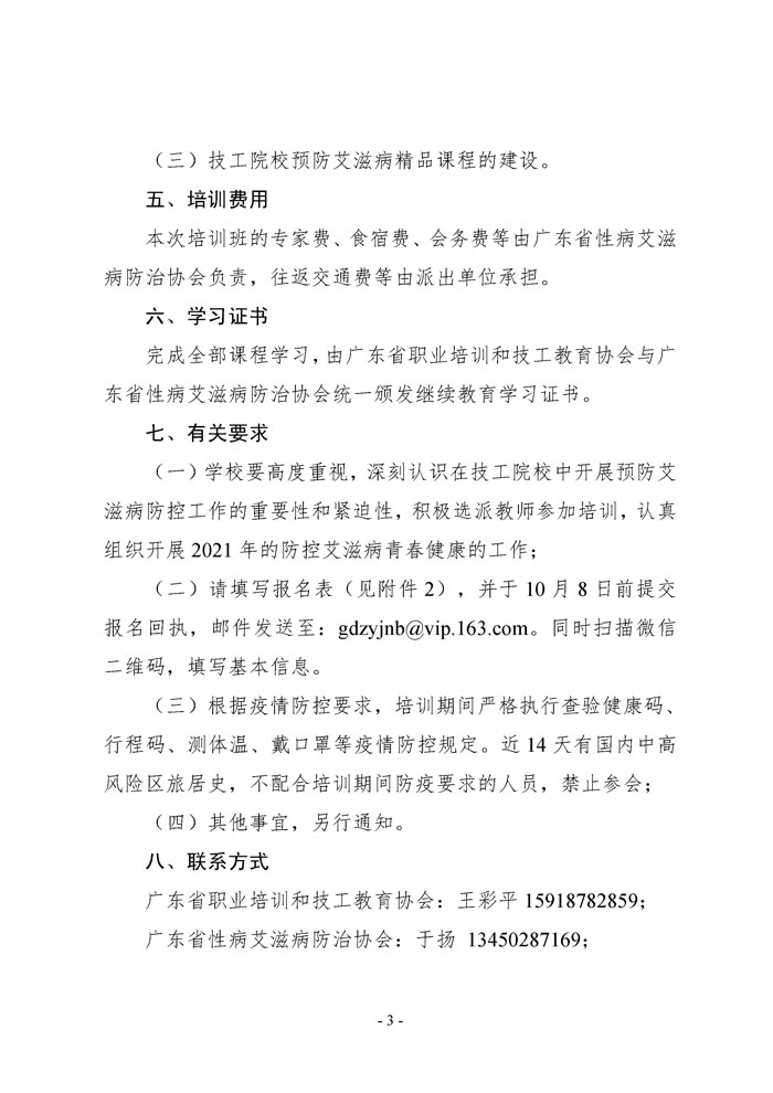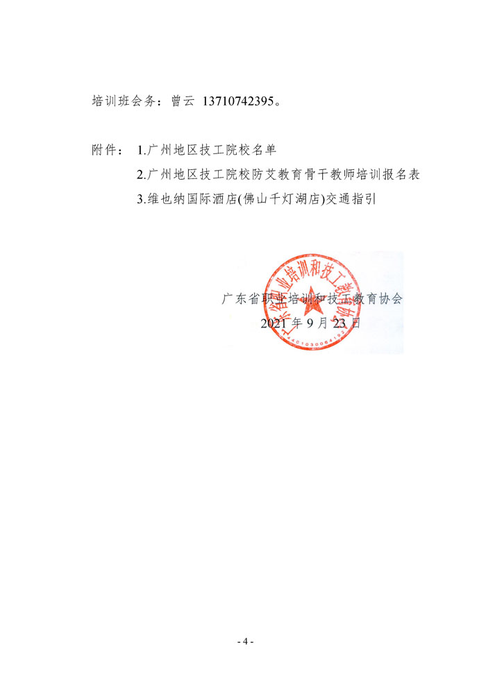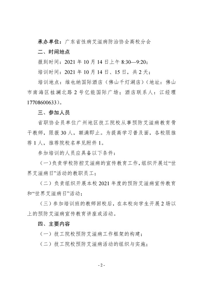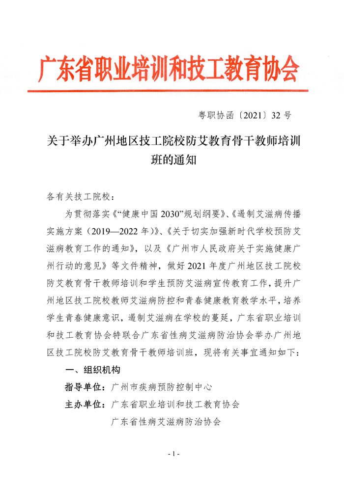 文件下载: 关于举办广州地区技工院校防艾教育骨干教师培训班的通知(粤职协函〔2021〕32号)