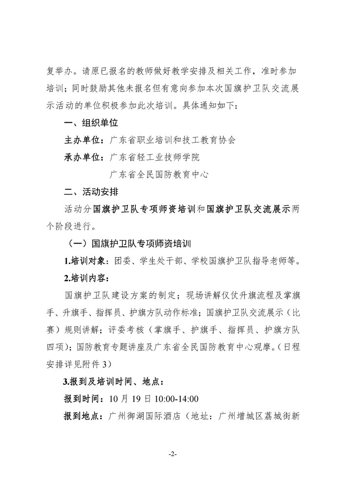 关于恢复举办广东省技工院校首届国旗护卫队交流展示活动专项师资培训的通知