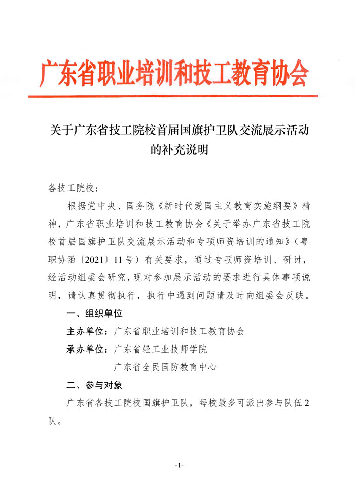 关于广东省技工院校首届国旗护卫队交流展示活动的补充说明