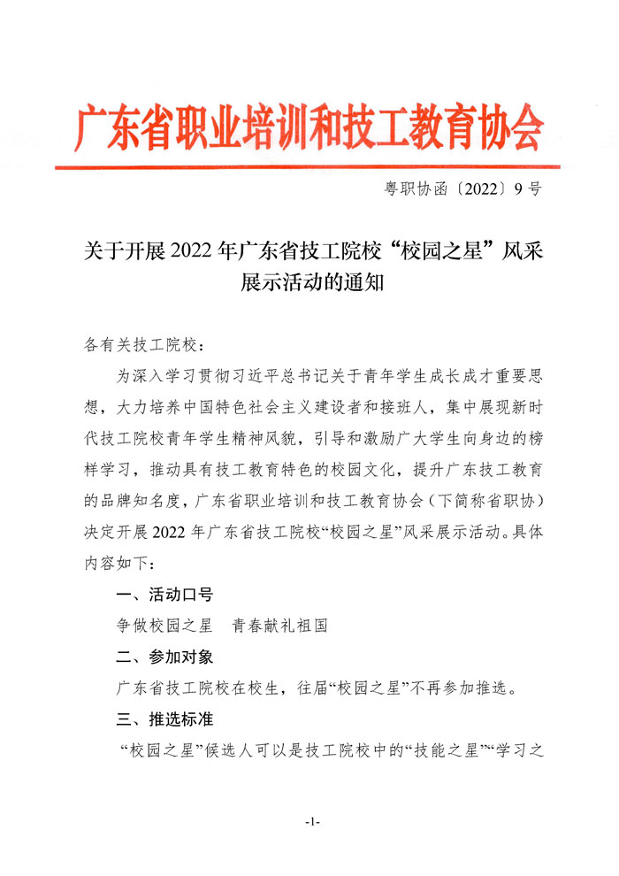 关于开展2022年广东省技工院校“校园之星”风采展示活动的通知